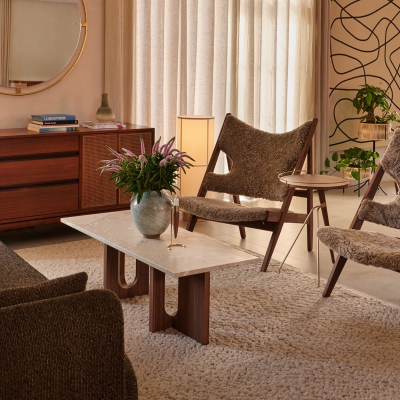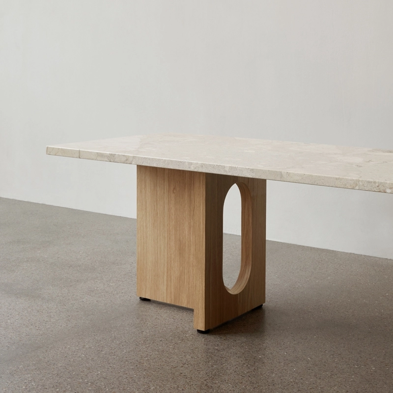 Androgyne was initially designed by Danielle Siggerud for the Menu Space café, but it soon stood out for its playful, elegant silhouette. Celebrating craftsmanship, the Androgyne coffee table is available in natural or dark oak, walnut, Calacatta Viola marble or Kunis Breccia stone, but also with a wood base, combined with a stone top. With its generous proportions, simple shapes and different finishes, the Androgyne Menu coffee table fits easily into any living room, adding a touch of elegance. It can also be used as a small bench to display books or small objects.