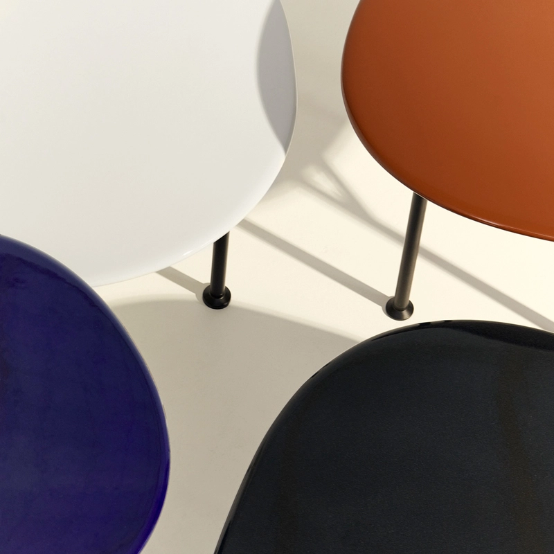 The Carmel low tables are the first ceramic tables produced by Gubi. With its powder-coated galvanised steel frame and glazed stoneware top, this coffee table is perfectly sturdy enough to take on the summer weather. The Carmel coffee table features vibrant colour options, high-gloss enamelling and richly textured finishes. Suitable for both indoor and outdoor use, Carmel stands out for its organic silhouette that gives it a playful, happy character. Available in three sizes, the Carmel coffee table Gubi can be used on its own or in combination with several elements to create an original composition.