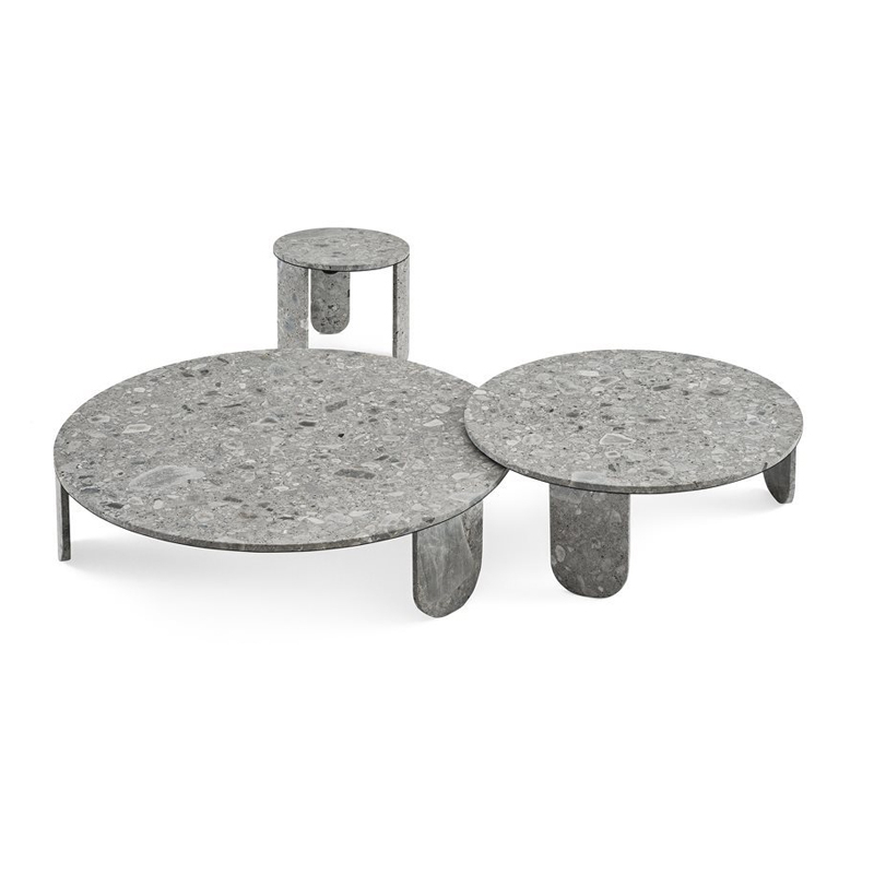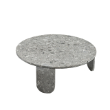 The sublime coffee table Clemo by Massimo Castagna for Gallotti&Radice comes in two sizes. It is available in brushed Ceppo di Grè with hand-burnished metal details, but also in natural polished Calacatta Vagli Oro marble, or natural polished Bianco Carrara marble. On its own or in compositions of different sizes, the Clemo coffee table is perfect for a contemporary living room.