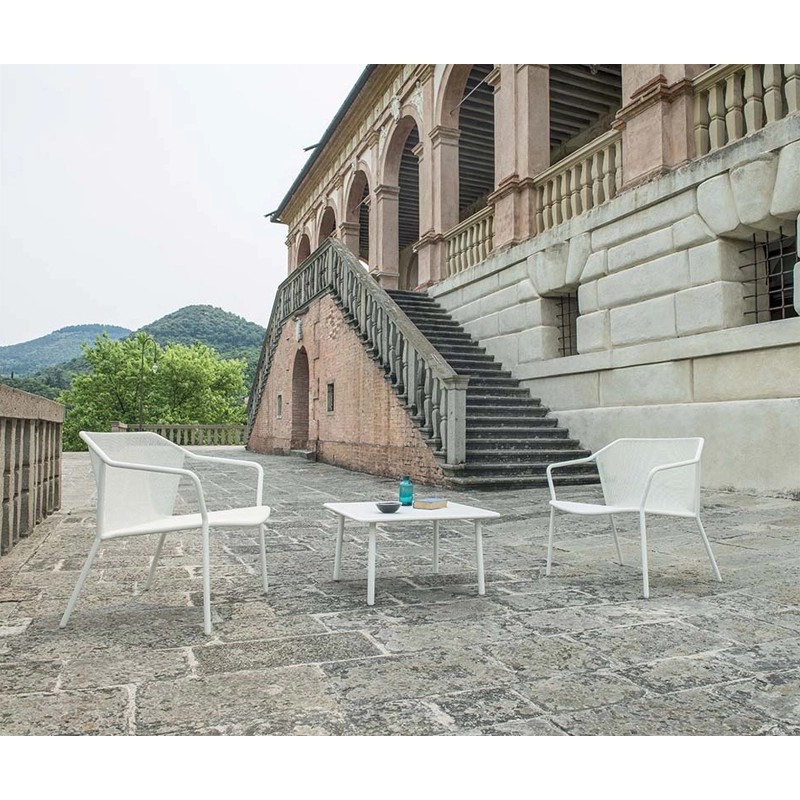 Darwin is a coffee table with ergonomic proportions and light lines. Comfortable and functional, Darwin by Lucidi and Pevere for Emu is a collection of outdoor furniture in steel that evokes classic themes through a delicate sheet metal frame inserted into a structure with contemporary geometry. Available in several colours, the Darwin outdoor coffee table is the perfect companion to the armchairs and sofas in the same collection.