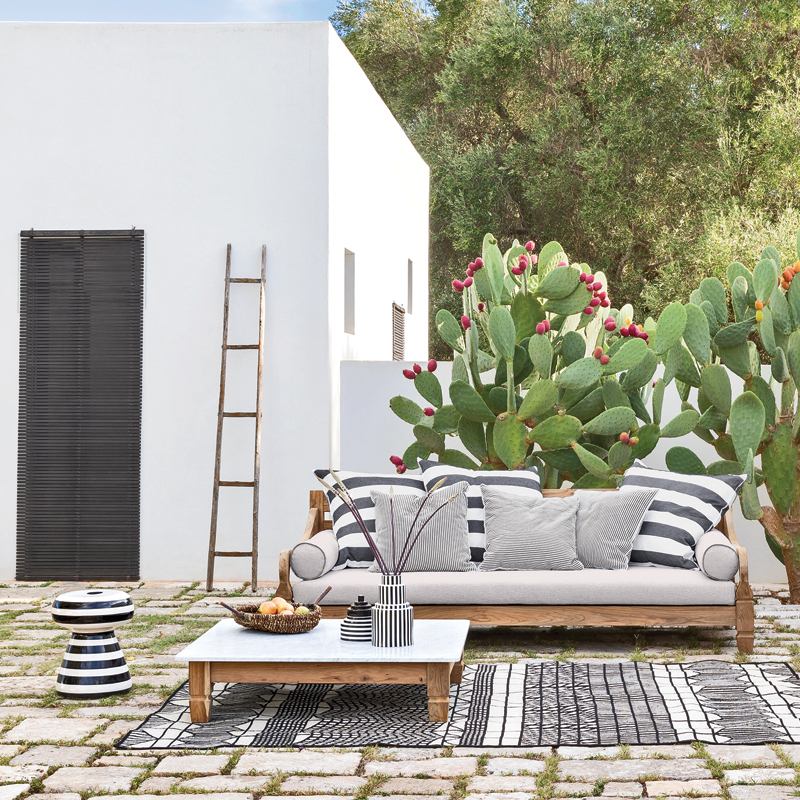 Created by Paola Navone for the Gervasoni brand, Inout 44 is a side table in GFRC concrete. Versatile, it can be used as a coffee table, footstool or footrest, indoors or out. Essential and minimal, the Inout 44 table stands out for its champagne cork shape and finishes. Polka-dot or striped versions add a playful, cheerful touch, while plain versions blend more into the space.
