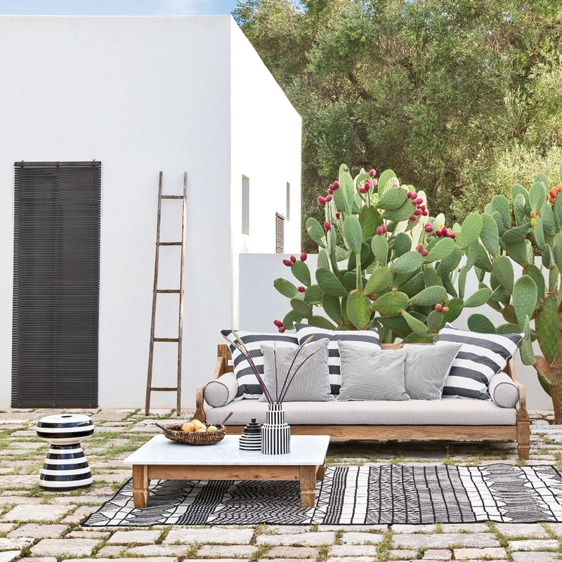 Outdoor Coffee Table INOUT 44 pedestal table Black stripes GERVASONI