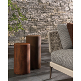 Minotti brings you the small Pilotis Outdoor tables, truly unique pieces due to the oxidation process that gives each of them their own specific characteristics. Les tables pilotis are designed as purely geometric solids. Their name refers to one of the unique architectural elements of rationalism.