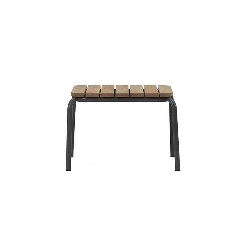 Imagined by designer Simon Legald forNormann Copenhagen, the Small Vig Outdoor Table 55x45 is part of a collection of tables, chairs and small outdoor armchairs, combining minimalist, timeless aesthetics with functionality. The collection Vig features a design inspired by nature through its organic shapes and the use of sustainable materials in its manufacture. All the furniture in the collection Vig is stackable and makes it possible to create outdoor spaces that are both welcoming and flexible, thanks to a wide range of chairs, small armchairs, deckchairs, benches and tables in different sizes. Made from double powder-coated steel, the collection Vig is designed to withstand all weathers. What's more, the top of the table Vig 55x45 is made from Robinia wood, reinforcing its strength and durability. The organic, soft lines of the Vig 55x45 table evoke nature and the timeless covering colours blend harmoniously into any outdoor space. All the furniture in the Vig collection is the perfect solution for creating modular, pleasant outdoor spaces, whether on a balcony, terrace or garden.