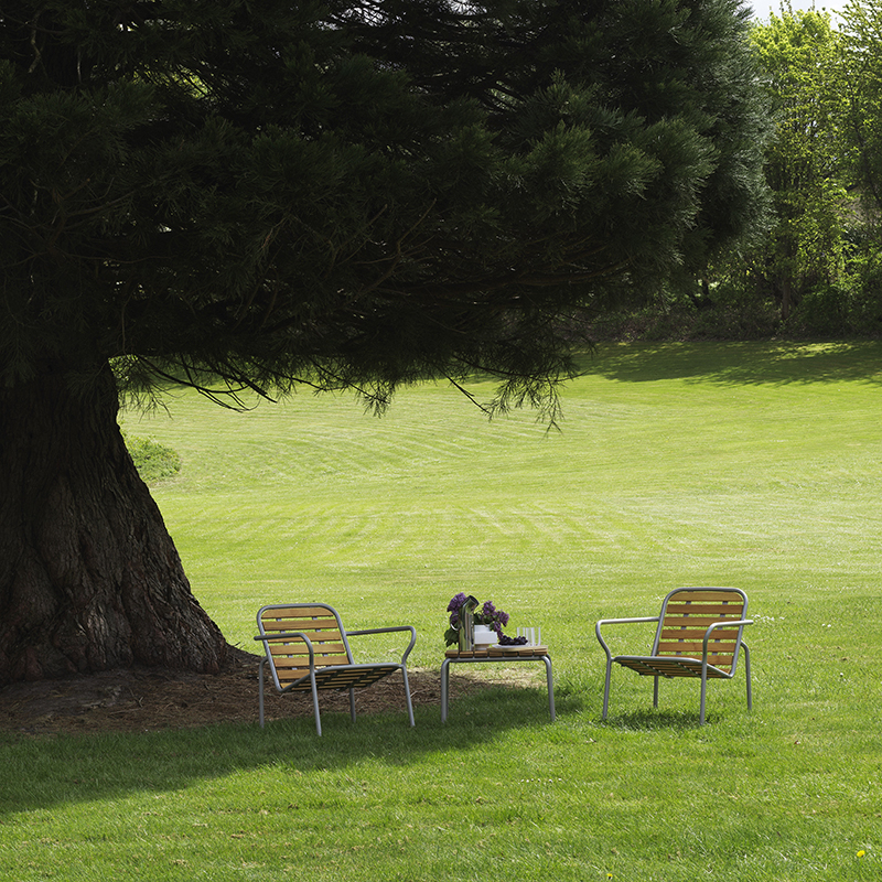 Imagined by designer Simon Legald forNormann Copenhagen, the Small Vig Outdoor Table 55x45 is part of a collection of tables, chairs and small outdoor armchairs, combining minimalist, timeless aesthetics with functionality. The collection Vig features a design inspired by nature through its organic shapes and the use of sustainable materials in its manufacture. All the furniture in the collection Vig is stackable and makes it possible to create outdoor spaces that are both welcoming and flexible, thanks to a wide range of chairs, small armchairs, deckchairs, benches and tables in different sizes. Made from double powder-coated steel, the collection Vig is designed to withstand all weathers. What's more, the top of the table Vig 55x45 is made from Robinia wood, reinforcing its strength and durability. The organic, soft lines of the Vig 55x45 table evoke nature and the timeless covering colours blend harmoniously into any outdoor space. All the furniture in the Vig collection is the perfect solution for creating modular, pleasant outdoor spaces, whether on a balcony, terrace or garden.