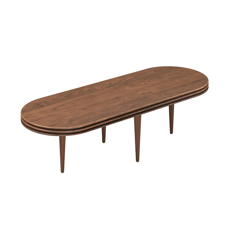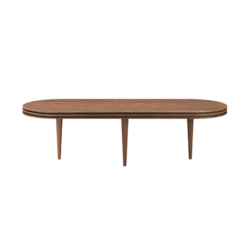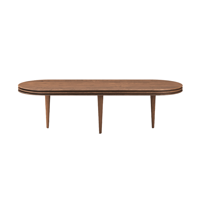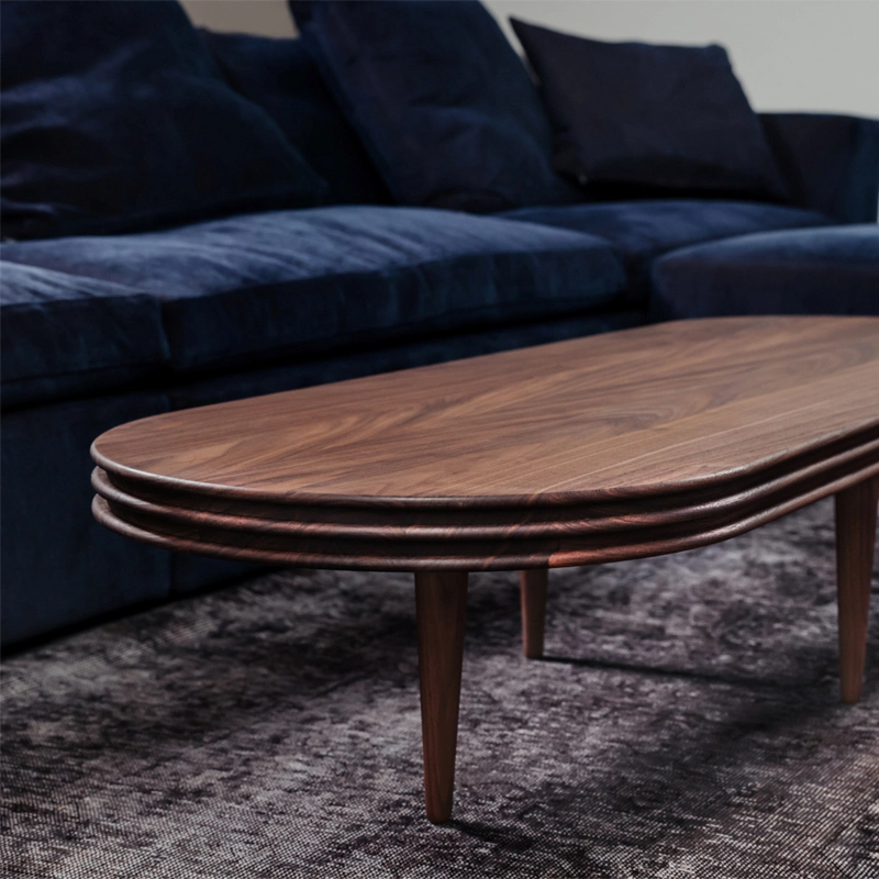 The elegant Groove Oval coffee table is part of the Groove furniture collection, created by Danish designer Christian Troels and published by DK3. The Groove Oval coffee table has been created on the principle of letting the natural beauty of wood emerge, highlighting the unique design details of the furniture. Details fine-tuned and refined throughout the design process, with as much passion as precision. The grooves on the edge of the table are made using a special milling head invented and built by Christian Troels. At five centimetres thick, the impressive tabletop is unique among coffee tables. But despite its weight and imposing dimensions, the table still has a lightness and elegance, underlined by the slender tapered legs and distinctive grooves. Clean lines and striking details make the Groove Oval coffee table a perfect fusion of natural aesthetics and sophisticated design.