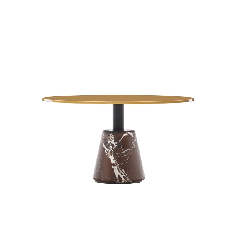 The Menhir collection undoubtedly refers back to Greek classicism and the famous French and British monoliths by erecting a matt column - in marble in the original version, which links the imposing marble base, known as "Rocchio", to its elegant lacquered wooden top; this choice of materials causes a rather striking contrast of colours and elements, but also a certain effect of stability.