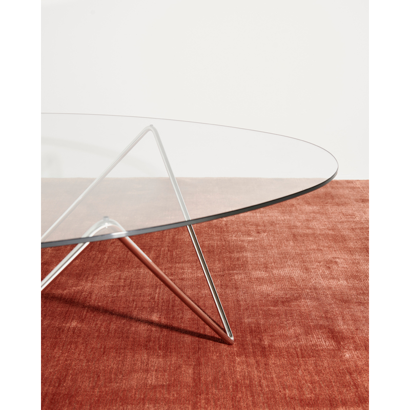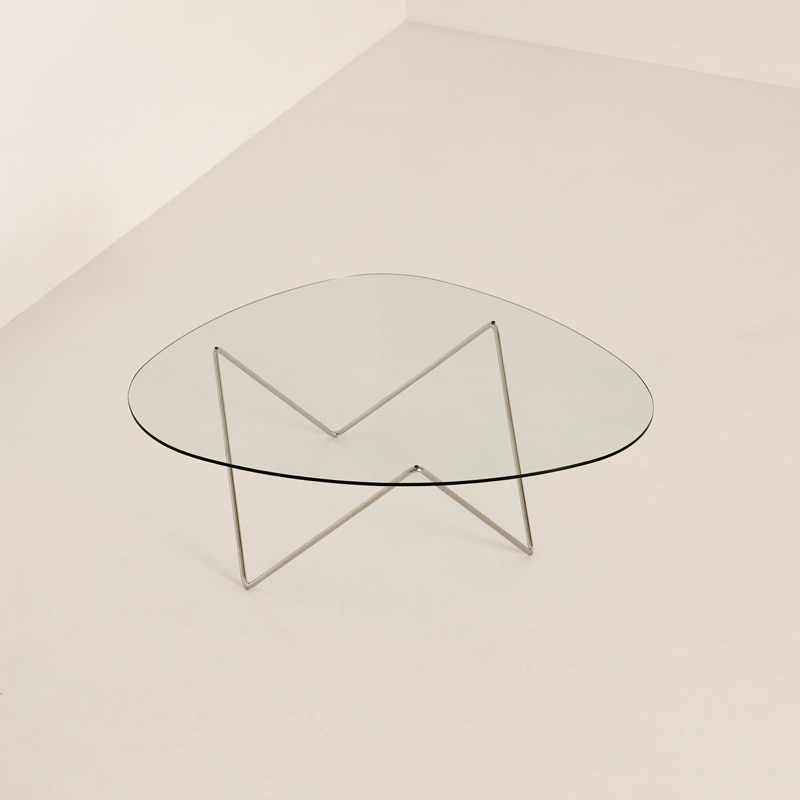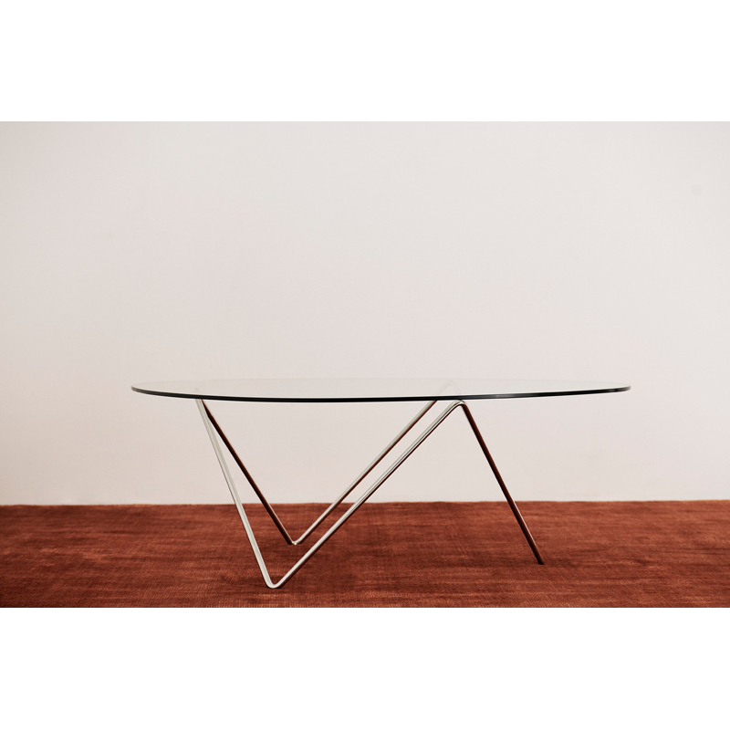 In 1955, functionalist architect Barba Corsini renovated Antoni Gaudi's "La Pedrera " building in Barcelona, and designed the furniture for the flats, including a series of lights and a coffee table. Edited by Gubi, the Pedrera coffee table features a steel base on which a glass top rests, echoing the shape of the lamp bases. The low table is both robust and visually light by design. The low table Pedrera by Gubi elegantly completes the living room with a graphic touch.