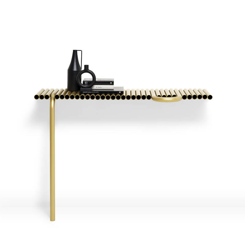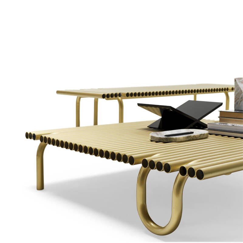 The Pipelines collection created by Bcsxy and published by the Mogg brand includes a set of coffee tables and a metal console, featuring a powerful graphic design and a strong personality.  Pipelines consists of a tray that combines painted metal tubes, bent in places to create one or more rigid legs. The surfaces created by the repetitive rhythm of the tubes in Pipelines create an elegant contrast between simplicity and solidity.  From wall-mounted consoles to square and rectangular coffee tables, the Pipelines collection will furnish your interiors with sophistication.
