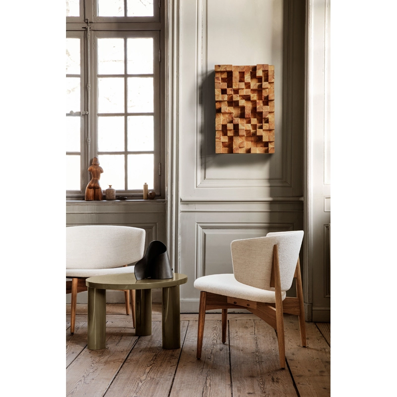 Inspired by the Brutalist movement, Post plays with shapes to create a coffee table that is both simple and seductive. Made from FSC-certified wood with a high-gloss lacquer finish. Edited by Ferm Living, this distinctive little table is mounted on three cylindrical legs and available in several soft colours.