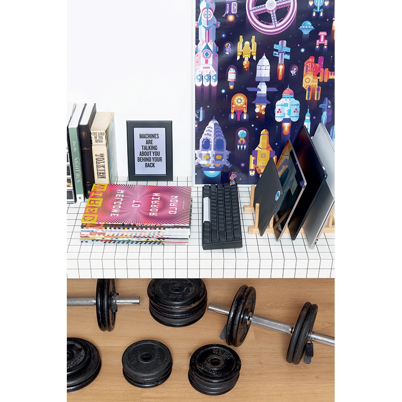 panneau alvéolaire plaqué en print, couleur blanche, imprimé en digital à carrés noirs