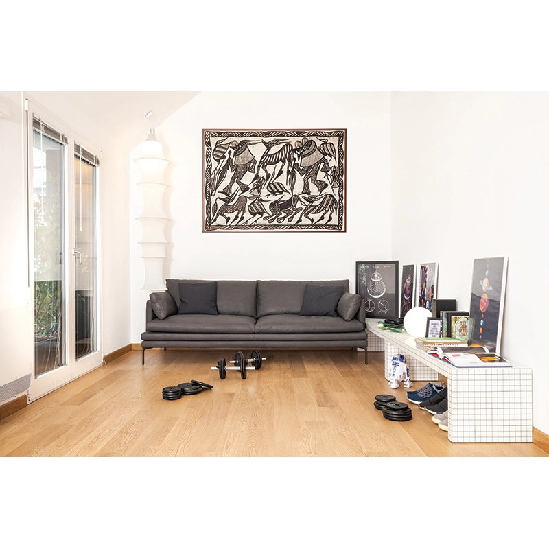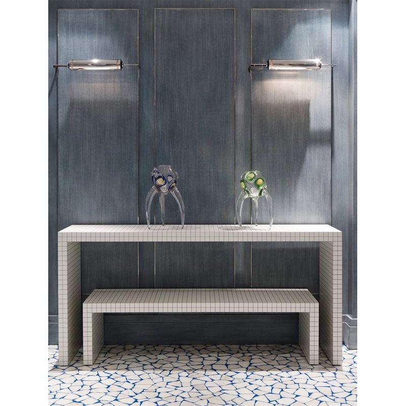 Designed by Superstudio between 1969 and 1972 and produced by Zanotta from 1972, the Quaderna collection is recognised as a manifesto of radical design. In 1969, the Superstudio group worked on "Istogrammi": objects constructed on the basis of a spatial mesh with an orthogonal pattern, adaptable to different scales. The theory of the Istogrammi led to the theory of an infinite world of objects to be invented, ranging from the purely flat surface to furniture and architecture. The products in the Quaderna collection are the result of a highly industrialised process and at the same time great craftsmanship. The tile laminate has been specially created based on Superstudio's design and features a 3 cm grid, produced using digital printing. This laminate is then applied by hand, requiring great precision and several hours of work for each piece. The convergence of the lines in the pattern creates a homogeneous surface, giving the furniture a strong personality. This Quaderna piece of furniture is a versatile piece, finding its place as a coffee table in the living room, as well as a low console or small bench in the hallway.