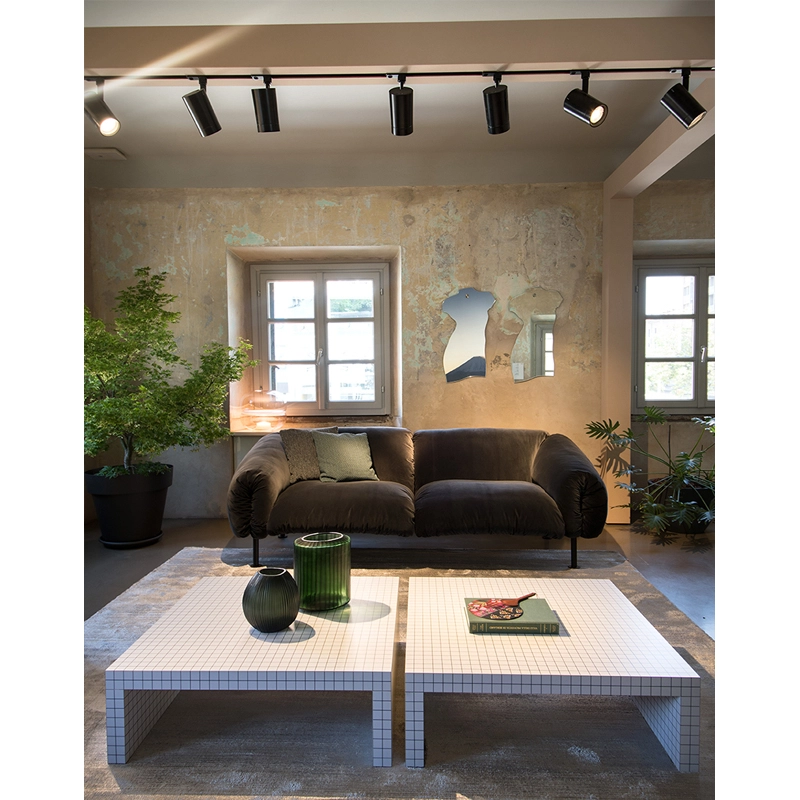 The Quaderna coffee table stands out for its generous dimensions and brings a strong personality to any living room.