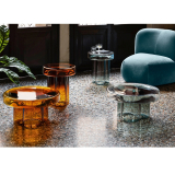 Each solidly designed table comes from a single volume of Murano glass blown and demoulded by master glassmakers. Soda has a unique foot made up of 3 petals that lift its tray. The entire material of the Soda table resonates: its transparency and hammered shell fragment and play with the light, giving it a primitive aesthetic.