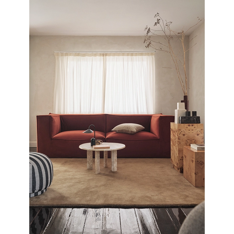 Published by Ferm Living, the Taula coffee table H 35 in marble is inspired by the iconic megalithic structures of the Balearic Islands, bringing a touch of timeless beauty to your home. Its smooth, flowing silhouette is accentuated by a bevelled edge and supported by four wide, linear legs. Paired with the Taula side table, these tables can be arranged side by side or slightly overlapping to create a coherent, dynamic composition. Supplied flat-packed for easy assembly and minimal packaging, the Taula H 35 marble coffee table perfectly embodies the fusion of ancestral inspiration and contemporary design.