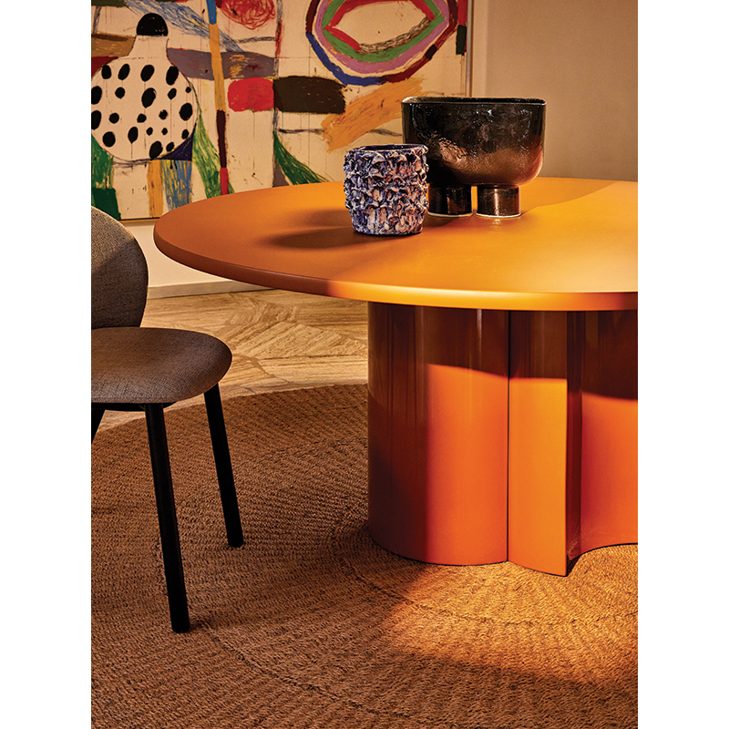 The Bol table, designed by Zaven for Zanotta, is a sophisticated and versatile piece of furniture, blending minimalism and original geometric shapes. The table Bol L 230 stands out for its original shapes and meticulous finishes. It has an oval MDF top and a rigid polyurethane base. The key innovation of this table lies in its semi-circular legs, which create a sculptural base. The table Bol Zanotta reflects a balance between elegance and sophistication, creating a symbiosis between form, function and aesthetics.