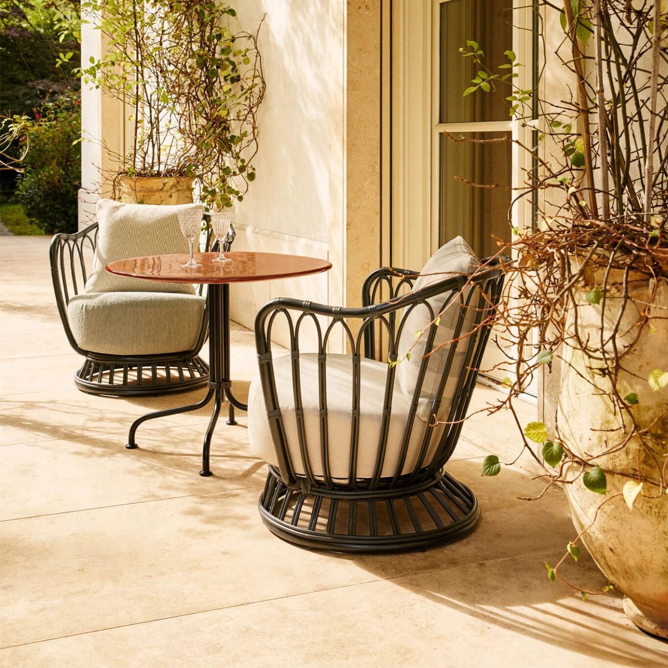 GUBI’s new Carmel Bistro Tables from OEO Studio blend the Californian-inspired vibrancy of their coffee tables with the timeless elegance of European culture. Designed for both indoor and outdoor use, the durable and resilient tables are perfect for both casual gatherings and formal occasions. Like the Carmel Coffee Tables, each features a 75x75 cm tabletop in glazed Italian stoneware, supported by a tree-like assembly of four semi matt black stainless steel legs. Available in two heights: lounge and dining; and two colorways: Red Rock and Clam White, Carmel Bistro Tables bring a sophisticated café charm to every setting.