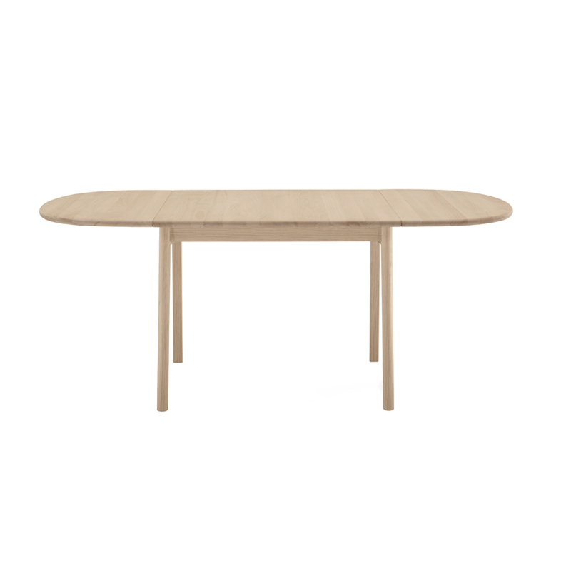 The dining table CH002, edited by Carl Hansen, highlights Hans J. Wegner's exceptional attention to detail and functionality. The CH002 table is ideal for small spaces but also for more spacious environments, thanks to its sleek, intelligent design. The table has folding extensions at both ends that can be easily lifted out to accommodate extra guests. The solid beech or oak design blends elegantly with all Wegner dining chairs, taking on a different, individual expression depending on the chair, the type of wood and the finish chosen. The table is also available in a similar larger edition under model number CH006.