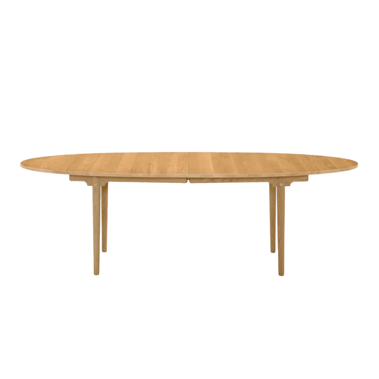 Designed by Hans J. Wegner for Carl Hansen, CH339 is a dining table for 8 people. Like the CH337, the CH339 has an elliptical solid wood top. Extendable, it can accommodate one or two extension leaves for larger meals.