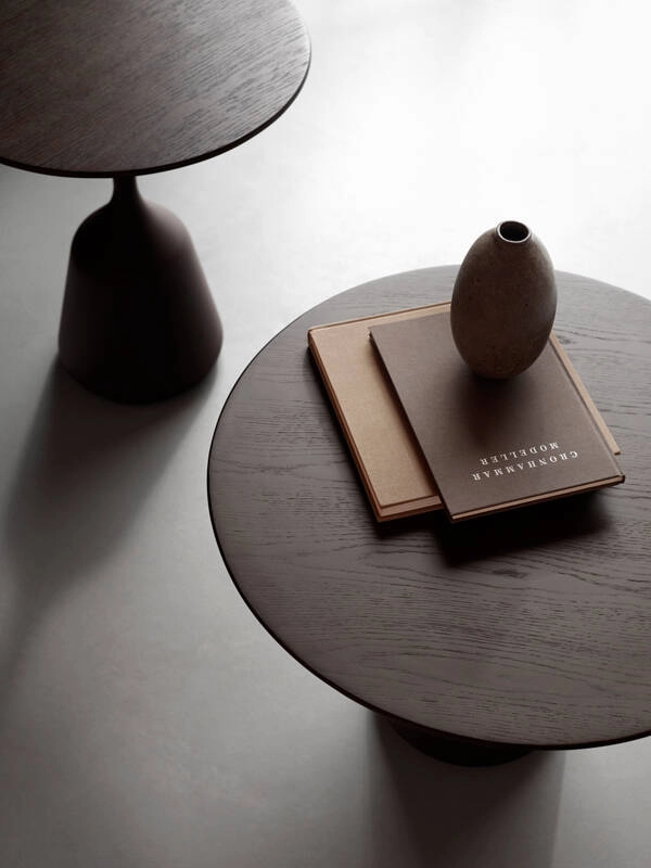 Available in two sizes, the Coin side table effortlessly fuses conical and circular components to create a piece that is both minimalist and organic. Edited by Wendelbo, the petite table Coin finds its place in the living room at the end of the sofa or in the bedroom as a bedside table. A dining table version is also available.