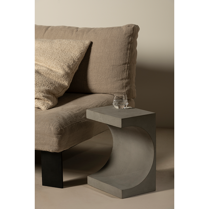 The Concrete Tangent table lampand coffee table, designed by French designer Patrick Paris and published by Serax, is characterised by its sleek aesthetic and innovative functionality. The unique half-moon shape of the lamp, lit from the inside, diffuses a soft, even light, creating a warm ambience. Concrete Tangent doesn't just brighten up spaces, it can also be used as a practical side table. Its grey concrete design gives this object a modern, timeless look, allowing it to blend in with a wide range of interior design styles. The Concrete Tangent coffee table and table lamp adds a touch of sophistication thanks to its understated, contemporary style, combined with its versatile functionality.