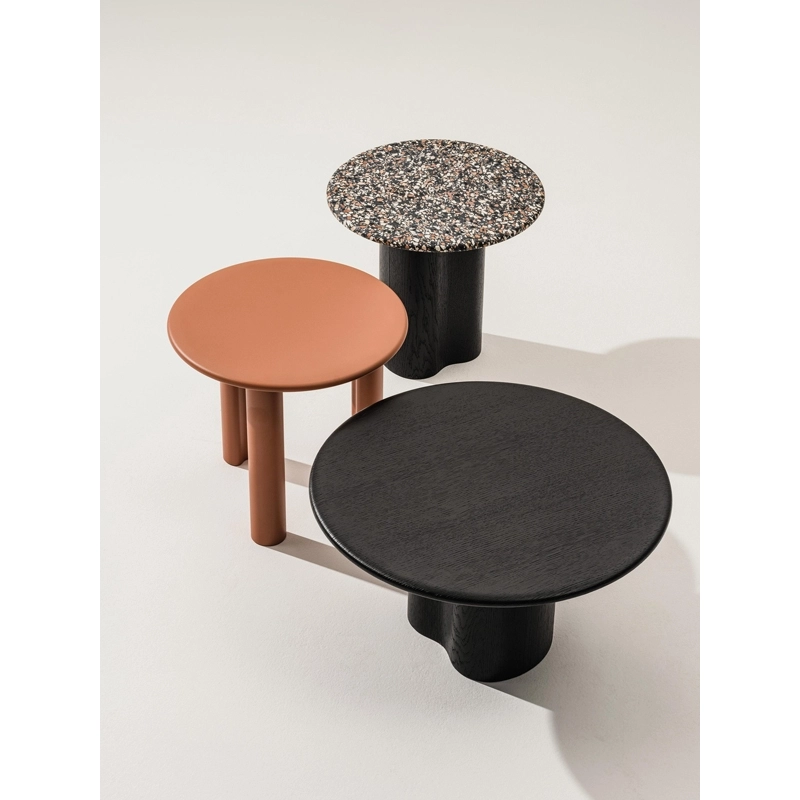 Edited by Arper, Ghia stands out for its soft, sculptural shapes and tactile materials inspired by nature. This collection of coffee tables brings a sense of harmony and calm to any space, thanks to a balance of organic geometric shapes.  Thanks to its expressiveness and the many versions available, the Ghia Arper coffee table collection adapts naturally to any type of environment, from reception areas to residential spaces, from lounge areas to living rooms. Two types of base, available in 3 different heights, support round or organic tops of various sizes, available in MDF, wood and Venetian terrazzo. Ghia allows you to create highly personal compositions by combining different models and mixing colours and finishes. The Ghia Arper collection is FSC-certified.