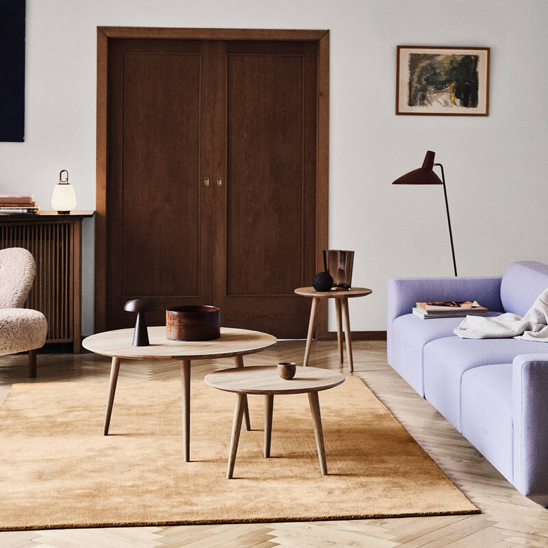 Part of the In Between collection, published by And Tradition, this coffee table carefully echoes many aspects of the In Between chair, from its gentle curvature to the outward tilt of its legs. The small SK13 table is available in three finishes: black lacquered oak, white oiled oak, and oiled smoked oak. It's perfect at the end of a sofa or as a bedside table, but can also be combined with models SK14 and SK15 to create a multi-table composition.