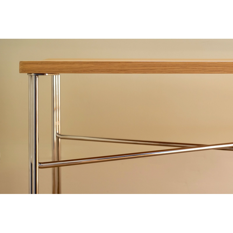 With Inline, Julien Renault has created a collection of simple, elegant pieces of furniture, distinguished by their structures made of parallel lines of stainless steel. These creations are based on the drawings of designer Julien Renault, where simple straight lines with tight radii come together to create elegant, solid structures. The legs of the Inline coffee table are made from polished stainless steel, while the top is made from solid oak. Published by Nine, the Inline coffee table is available in three formats. The collection also includes two wall shelves and a floor shelf.