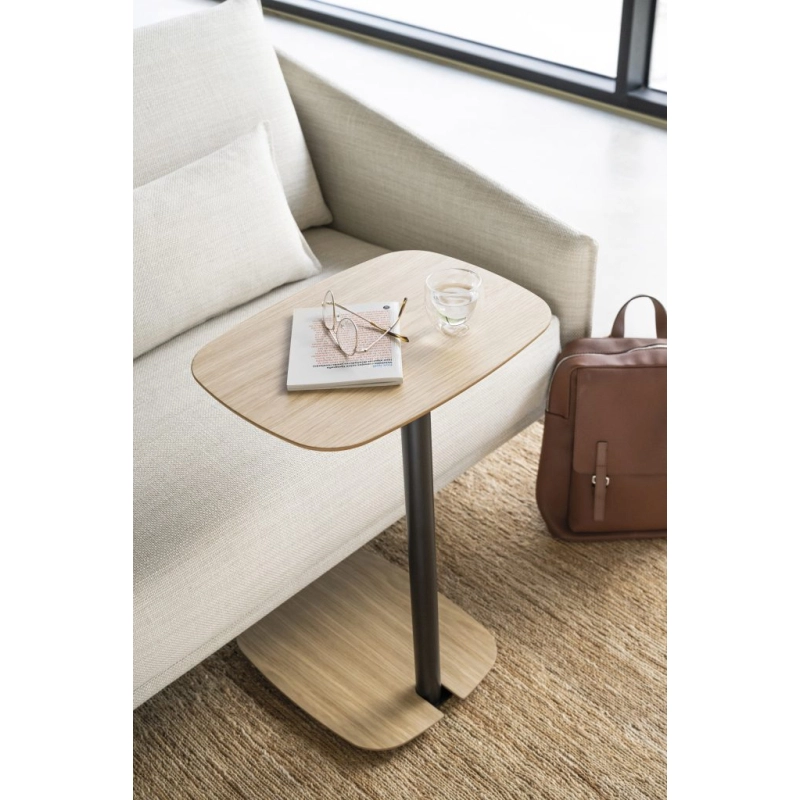 Edited by Stua, Meseta - which means tray in Spanish - is a side table that makes work and everyday life easier. Thanks to its dimensions, it can be used in any armchair or sofa. The Meseta table has two surfaces connected by a slim steel column. The top can be screwed in two different positions - parallel or perpendicular to the base - depending on how you use the table. Meseta from Stua comes flat-packed in easy-to-carry packaging with handle.