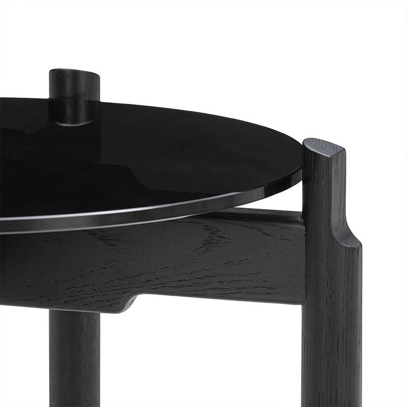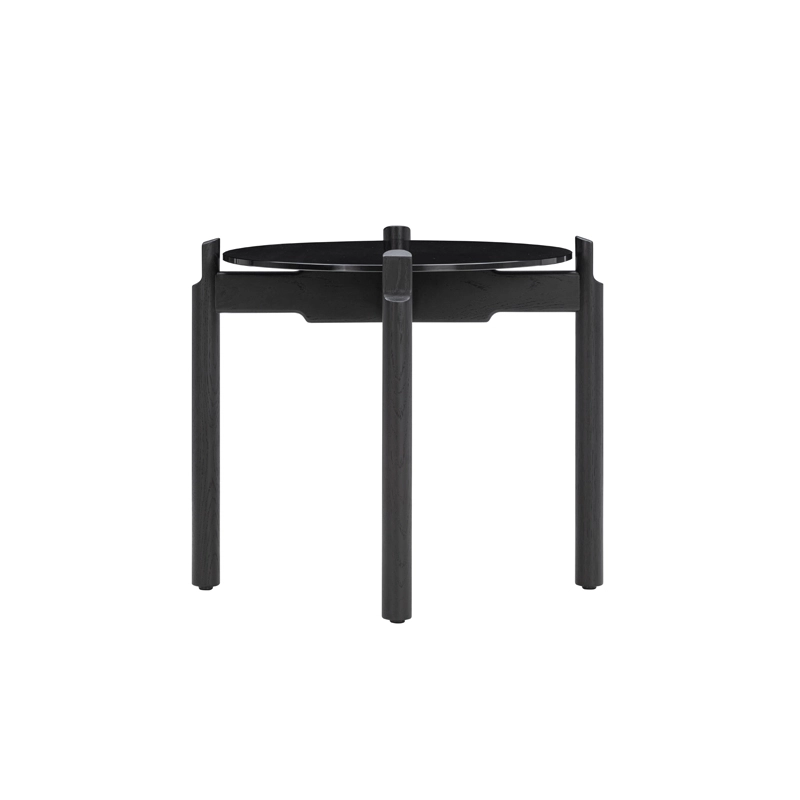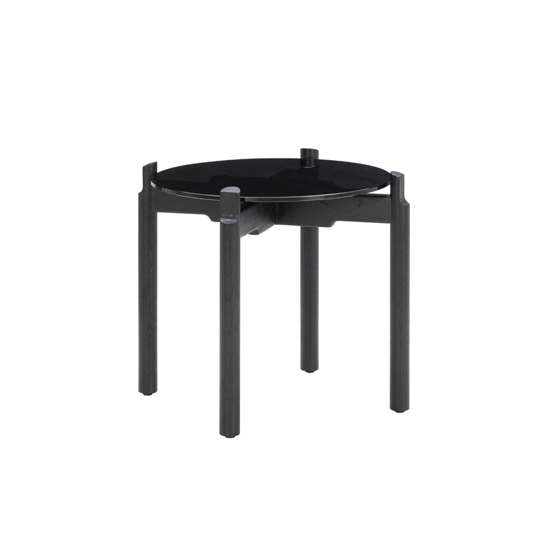 Wendelbo brand, feature a striking graphic character that accentuates the inherent qualities of the components. The semi-transparent tops rest on a black-stained oak base, giving them plenty of character. The beauty of these