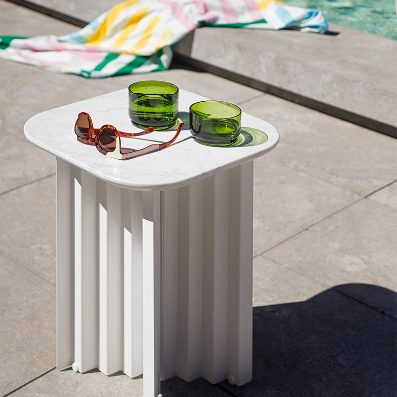 Edited by RS Barcelona, Plec is a collection of coffee and occasional tables that work perfectly together, but are also great on their own. With their accordion-shaped base, the Plec tables play with shadows and light at any time of day. Plec tables have a steel structure with polyester paint. The top is available in steel or marble in a range of colours, so you can combine sizes, colours and finishes. The Plec collection fits easily into any space, whether as a coffee table in front of the sofa, as a pedestal table in a reception or waiting area, or in a garden surrounded by plants. Indeed, the table Plec is suitable for outdoor use thanks to the cataphoretic coating process applied to the steel. With Plec, RS Barcelona has combined design, personality, functionality and strength.