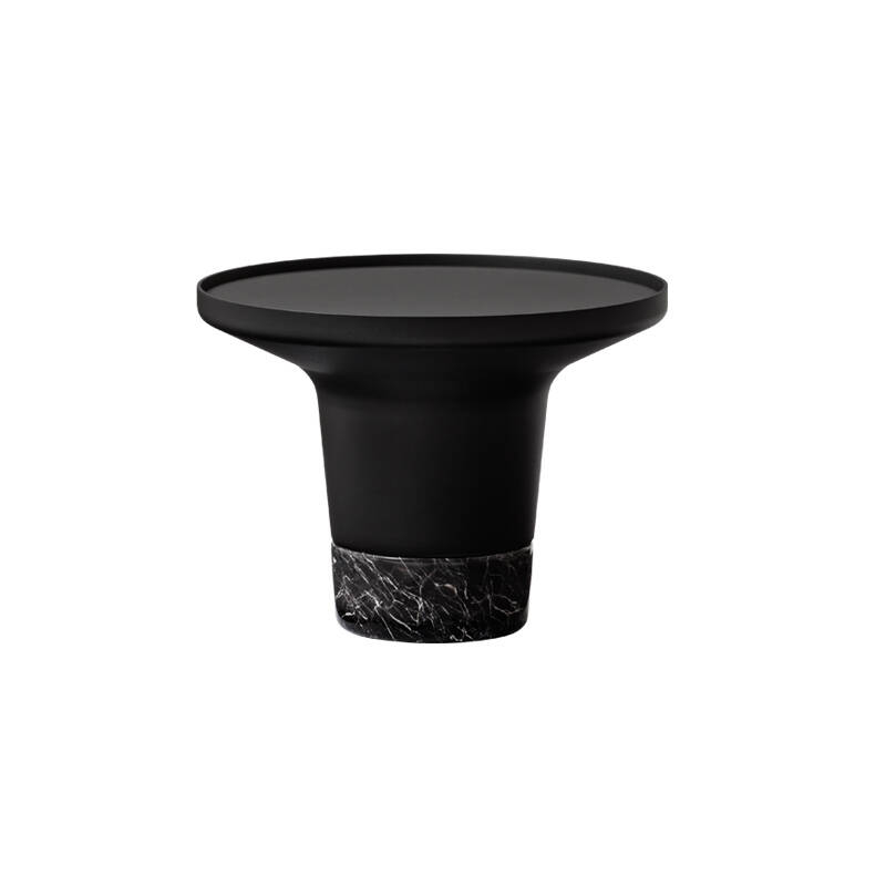 plateau stratifié noir, base aluminium noir et marbre marquina noir