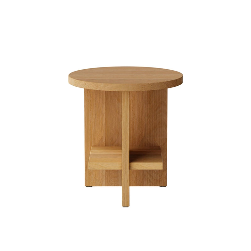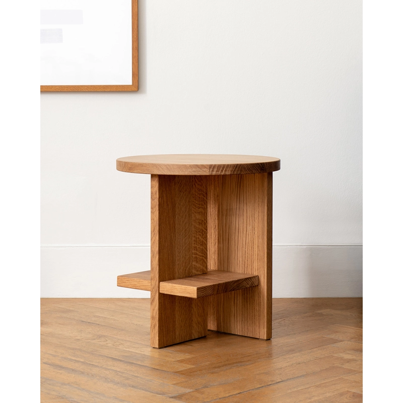 Designed by Mattero Fogale, Tee is a collection of side tables that are both compact and functional. The interlocking structure under the tabletop ensures the table's strength and can also be used as a shelf for books and magazines. Available in round or rectangular versions, the Tee table from Nine is delivered flat-packed and can be assembled in minutes, without any tools. This simple yet sculptural piece is made from solid oak with an oiled finish. Edited by Nine, the Tee side table is ideal as the end of a sofa in the living room or as a bedside table in the bedroom.
