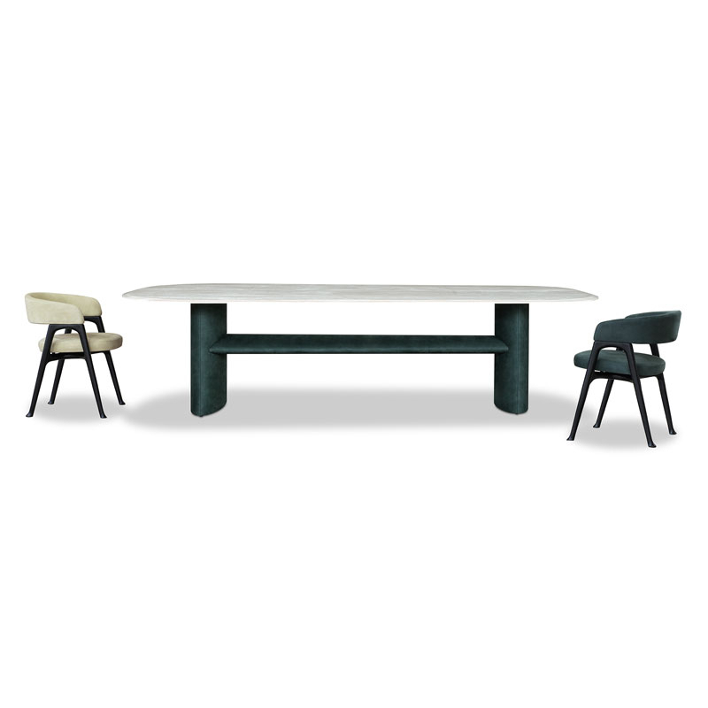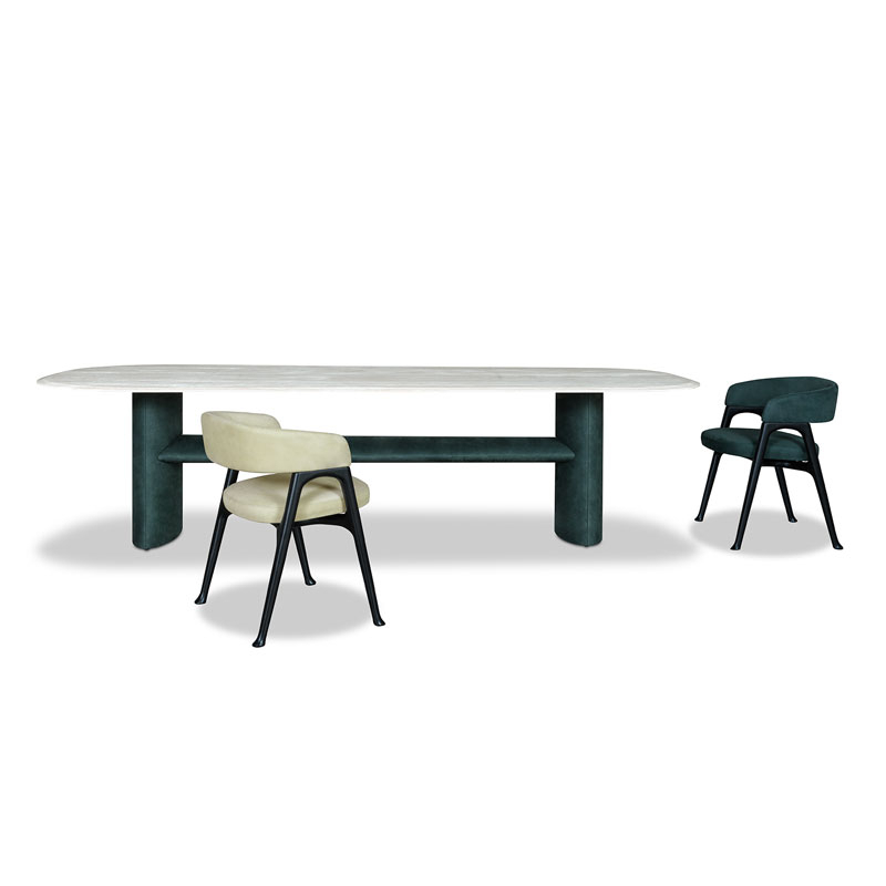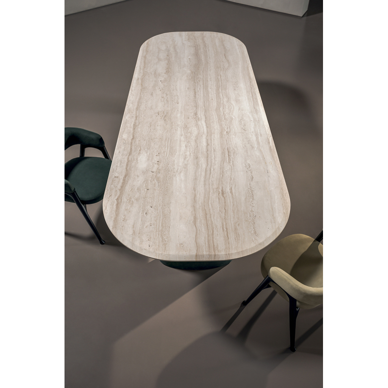 Designed by Frederico Peri for Baxter In Italy, the Ellipse tablefeatures a 20mm-thick stone top whose organic shape gives it great lightness despite its size. The sturdy base is in leather-covered MDF. Its design is linear, without excess. The Ellipse design table by Baxter will make your dining room unique!