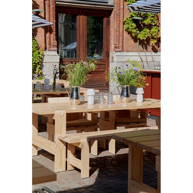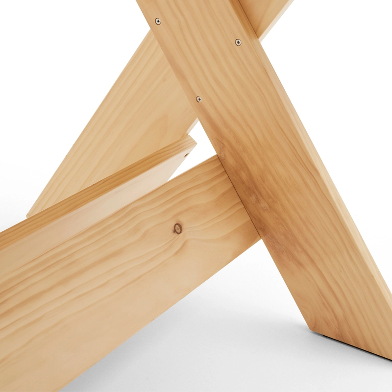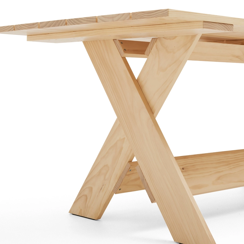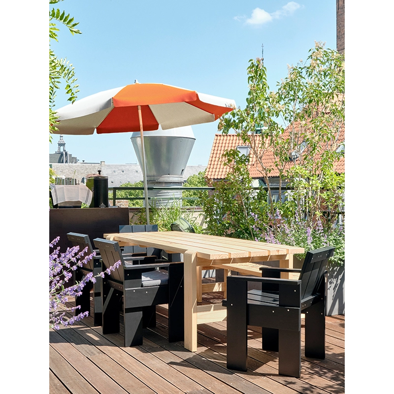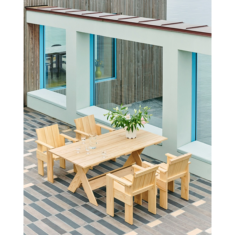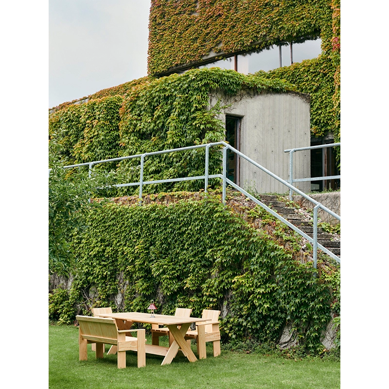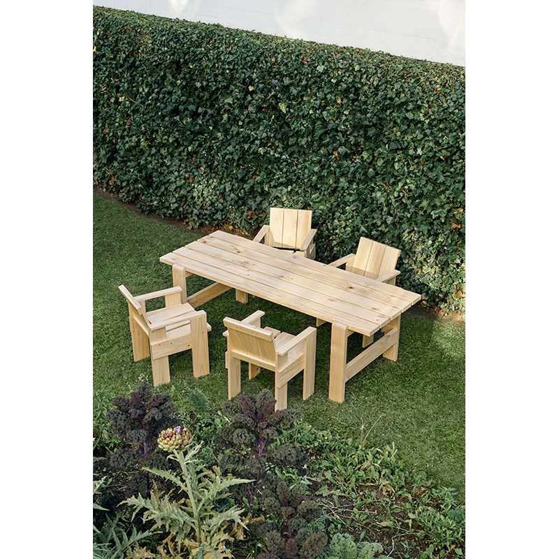 Designed by Gerrit Rietveld in 1934, the Crate collection has been relaunched as part of a collaboration between Rietveld Originals and Hay. This series of streamlined pieces of furniture was originally designed to make use of surplus wooden shipping crates. Reissued in keeping with the original design, the table Crate features the same perfectly balanced proportions and obvious construction to minimise production costs and optimise the assembly process. The simplicity and spatial design of the table Crate reflects the designer's architectural style. Made from solid pine and treated with a water-based outdoor lacquer, the table Crate is ideal for outdoor spaces such as the terrace or garden.
