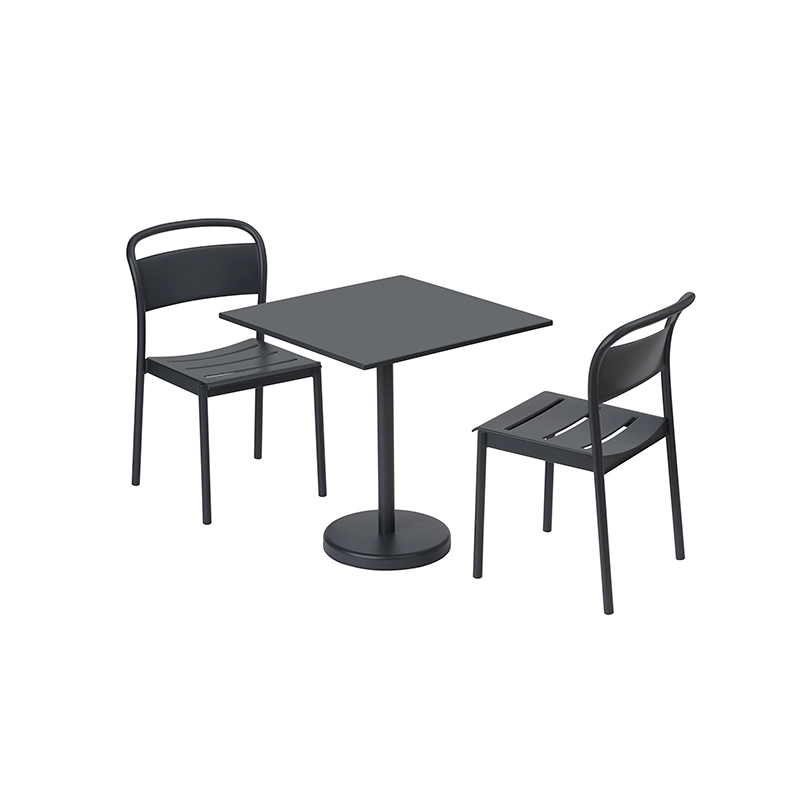 Edited by Muuto, the Linear Steel bistro table features clean lines and elegant shapes, allowing it to complement any outdoor environment. With its clear lines and a look that is both timeless and contemporary, Linear brings new perspectives to outdoor furniture while enhancing its setting. Available with a square or round top, the Linear Steel Café table is perfect accompanied by two chairs or small armchairs from the same series. Its compact size means it looks equally at home in the garden or on the balcony.