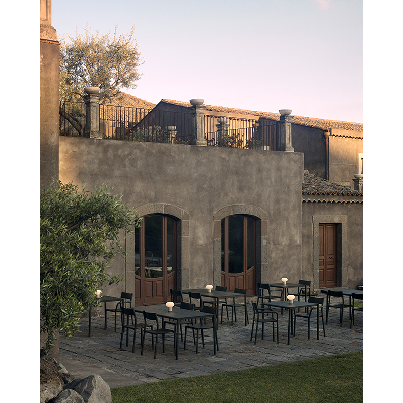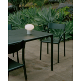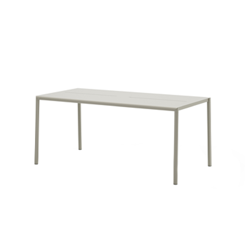 New Works has created the May collection, featuring seating and tables designed specifically for outdoor spaces. Made from powder-coated steel, the table May 170x85 is resistant to all weather conditions. The design of the May series is distinguished by its elegant simplicity and precise detailing, marrying a delicate, powder-coated surface with a robust steel frame. The table May 170x85 has a surface with a slot in the middle to facilitate water drainage, a feature also present on the seats in the series. This clever design creates a repetition of lines that brings lightness and coherence to all the outdoor furniture. This table represents the perfect marriage between elegance and functionality, offering outdoor spaces such as gardens, patios, terraces and balconies durable and aesthetically pleasing furniture. The May <170x85 table from New Works thus embodies the ideal compromise between contemporary style and practicality, adding a touch of elegance to any outdoor environment.