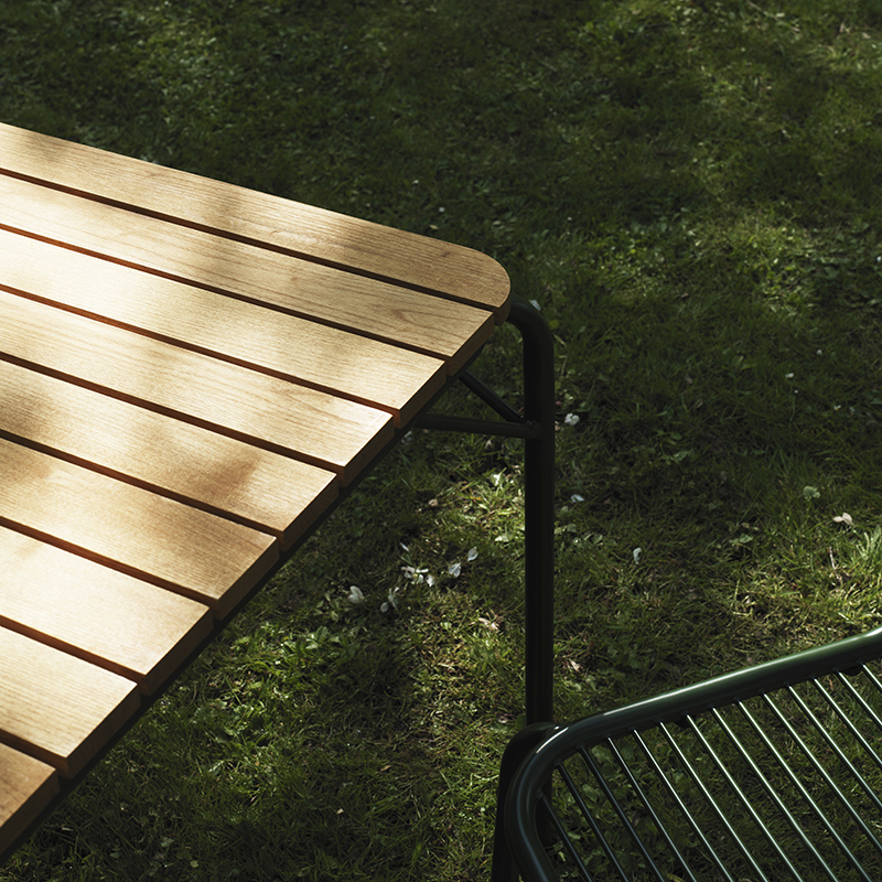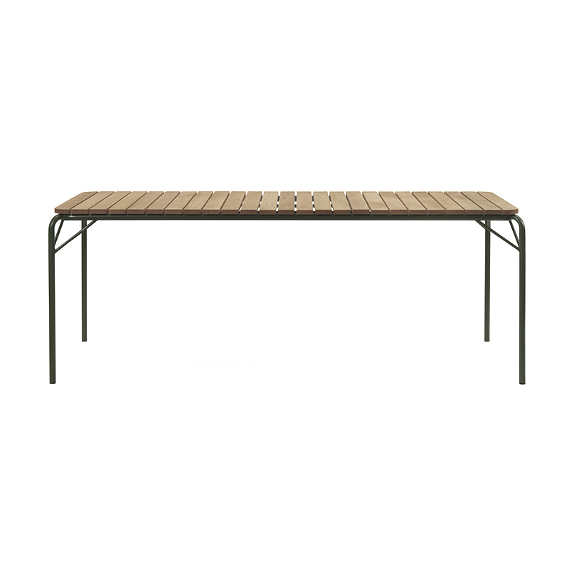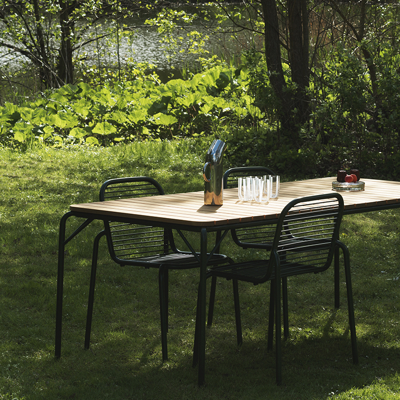 Imagined by designer Simon Legald forNormann Copenhagen, the large Vig outdoor table 90x200 is part of a collection of outdoor tables, chairs and small armchairs, combining minimalist, timeless aesthetics with functionality. The collection Vig features a design inspired by nature through its organic shapes and the use of sustainable materials in its manufacture. All the furniture in the collection Vig is stackable and makes it possible to create outdoor spaces that are both welcoming and flexible, thanks to a wide range of chairs, small armchairs, deckchairs, benches and tables in different sizes. Made from double powder-coated steel, the collection Vig is designed to withstand all weathers. What's more, the top of the Vig 90x200 table is made from Robinia wood, reinforcing its strength and durability. The organic, soft lines of the Vig 90x200 table evoke nature and the timeless covering colours blend harmoniously into any outdoor space. All the furniture in the Vig collection is the perfect solution for creating modular, pleasant outdoor spaces, whether on a balcony, terrace or garden.