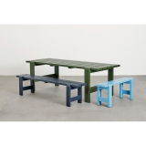 Designed by designers Hannes & Fritz for Hay, Weekday is a collection of outdoor benches and tables. Inspired by the idea of bringing people together, the Weekday table combines a sturdy, massive presence with gently rounded articulations, bringing a warm, familiar feel that invites sharing a meal in a convivial atmosphere. The Weekday collection is made from solid pine wood, which will take on a beautiful patina over time and last for many years. The robust yet universal nature of the Weekday collection, combined with its various size options and weather-resistant water-based treatment, makes it suitable for outdoor use.