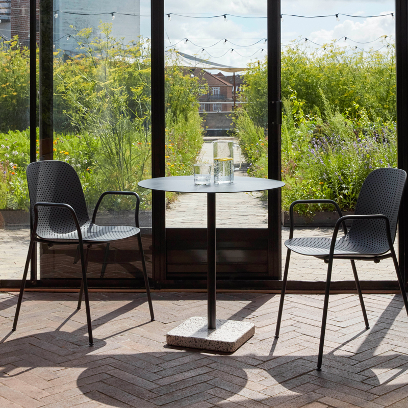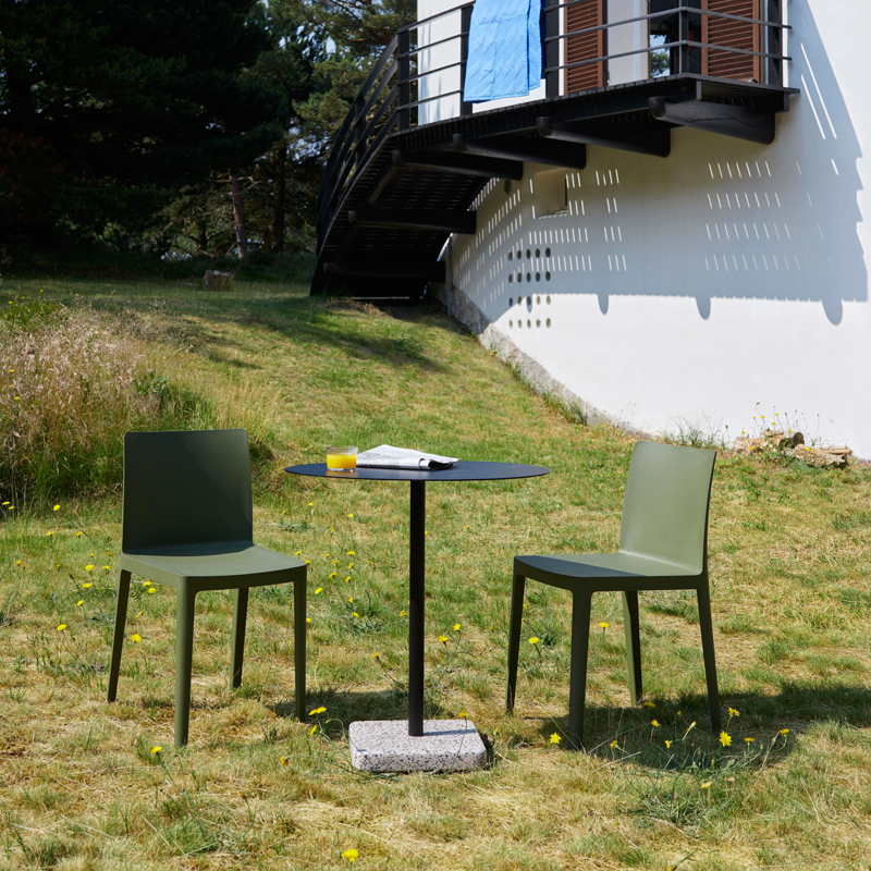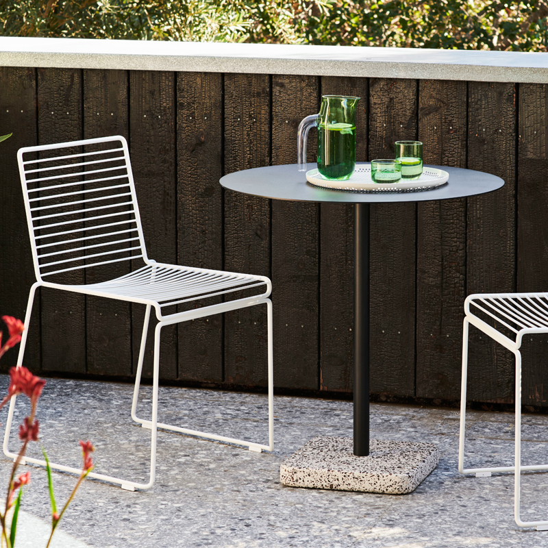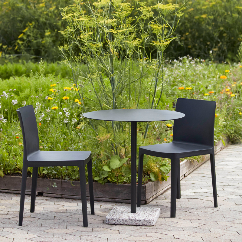Terrazzo Ø 70 comes with a round or square top, made from electro-galvanised steel with an epoxy finish, for greater strength. The base is made from polished terrazzo, a material chosen not only for its durability, but also for its unique and distinctive finish, which contrasts with the simplicity of the top. Designed for use in a garden, terrace or balcony, the