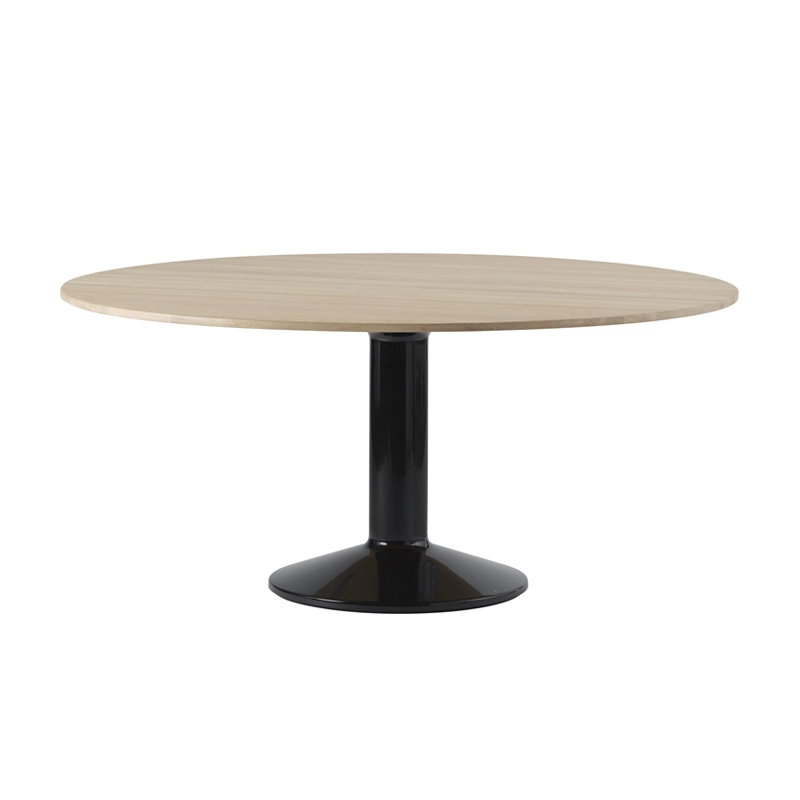 Edited by Muuto, Midst is a table dining round always offering enough room to accommodate your guests, and even one more if you need to! The refined silhouette of the Midst Muuto round table is simple but distinctive. Indeed, Midst is enhanced by distinct details and contrasting materials: matt solid oak or linoleum on a monolithic spun steel base with a durable, high-gloss finish. Midst is available in numerous finishes and two diameters.