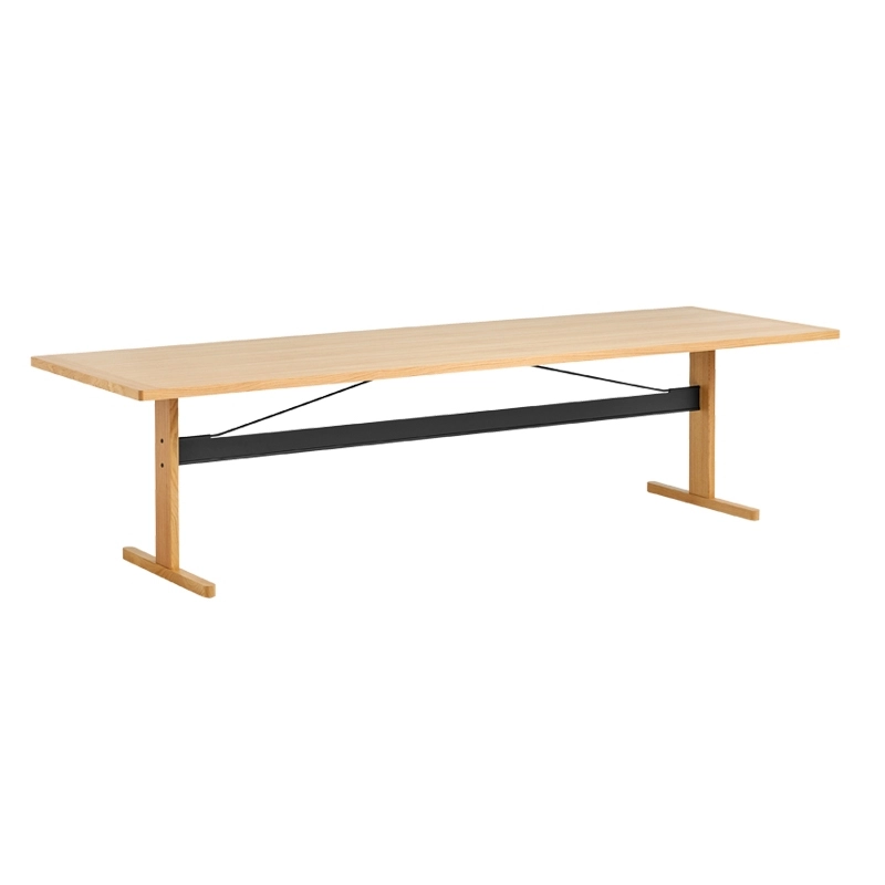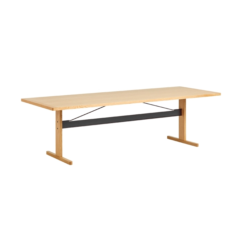 Inspired by the clean aesthetic of Shaker-style furniture, French designers Ronan & Erwan Bouroullec have designed the table Passerelle, an updated interpretation sharing the same simplicity and quality in a more contemporary context. With a balanced construction and flat packing, the Hay Gateway Table features a top with solid wood edges and a veneered surface over a Lisocore® core - a high-quality material that offers great strength while being very lightweight and easy to transport. Just as robust and functional, the structure is made of solid wood and aluminium. It also has a crossbar to strengthen and stabilise the table. The different sizes and finishes available amplify the multifunctional qualities of the Hay Gateway table. It can be used as a dining table in the kitchen or dining room, or as a meeting table in an office environment.