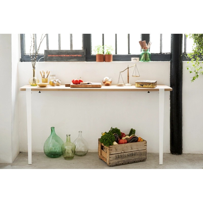 The 90 cm high table leg from TIPTOE can be used to make a bespoke worktop. Its height corresponds to that of a kitchen worktop. Combine it with the top of your choice and fix it to the wall using the BRACKET wall hook for a unique, made-to-measure worktop. These innovative, easy-to-use feet are available in a wide range of colours. They allow you to create a unique, personalised piece of furniture. TIPTOE is a French brand rooted in a sustainable approach.