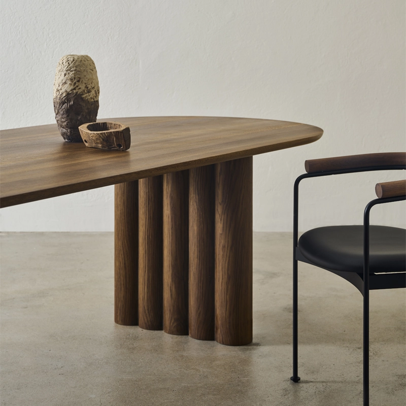 A DK3 piece of furniture is generally characterised by a wealth of detail, where small, subtle elements are reworked and refined to perfection. With the Plush table collection, DK3 founder Jacob Plejdrup has taken design in a completely new direction. Inspired by the principle "Less is more", he has created Plush, a table where small details have been replaced by soft, organic shapes in large format. As with his other creations, he has also developed the Plush tables so that the final design of the furniture highlights the beauty and natural characteristics of the wood. Throughout the design process, the emphasis was on creating a fine line between the imposing legs and the perfectly balanced curves that define the solid wood top. The Plush table lives up to its name with its soft shapes that, together with the sturdy wood and elegant top, form an impressive unit.