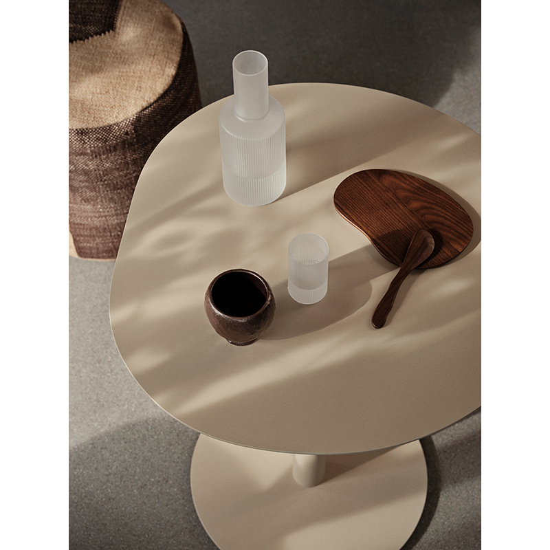 Ferm Living. Its organically shaped top, evoking an irregular, imperfect circle, is supported by a single, discreet column at the base. Made entirely from durable, powder-coated galvanised steel, the