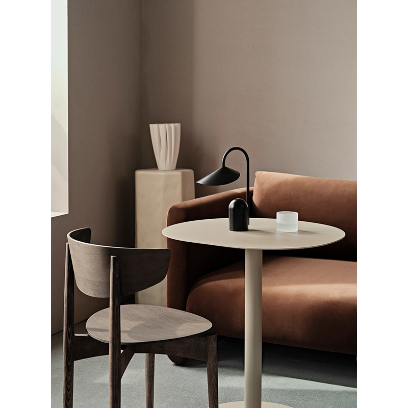 Bring a touch of serenity to your indoor or outdoor space with the Pond coffee tablefrom Ferm Living. Its organically shaped top, evoking an irregular, imperfect circle, is supported by a single, discreet column at the base. Made entirely from durable, powder-coated galvanised steel, the Pond coffee table is designed to withstand the elements. Its adjustable feet enable the table to be aligned on uneven surfaces, ensuring optimum stability. Ideal for small living spaces, it is equally at home on a balcony or terrace or in the kitchen. Supplied as a flat-pack kit, the Pond table from Ferm Living is easy to assemble and integrate into your decor.