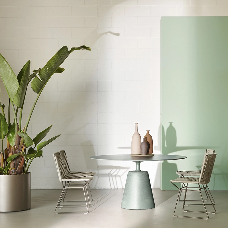 The iconic Rock table by Jean Marie Massaud, with its fluid, elegant silhouette, completely reveals the nature of what it represents: "a round table" that seems to float above a solid, inorganic base. A mix of natural and industrial materials that are blended to create a new product with a sleek design, following the same philosophy as the Flow collection.  A refined solid object, light and stable, radical and sensual. The unique style of Rock Table, based on simplified shapes, is combined with innovative production systems, making MDF Italia tables suitable not only for modern living rooms, but also for living room designs and working contexts, such as offices, meeting rooms, conference rooms with a strong identity.