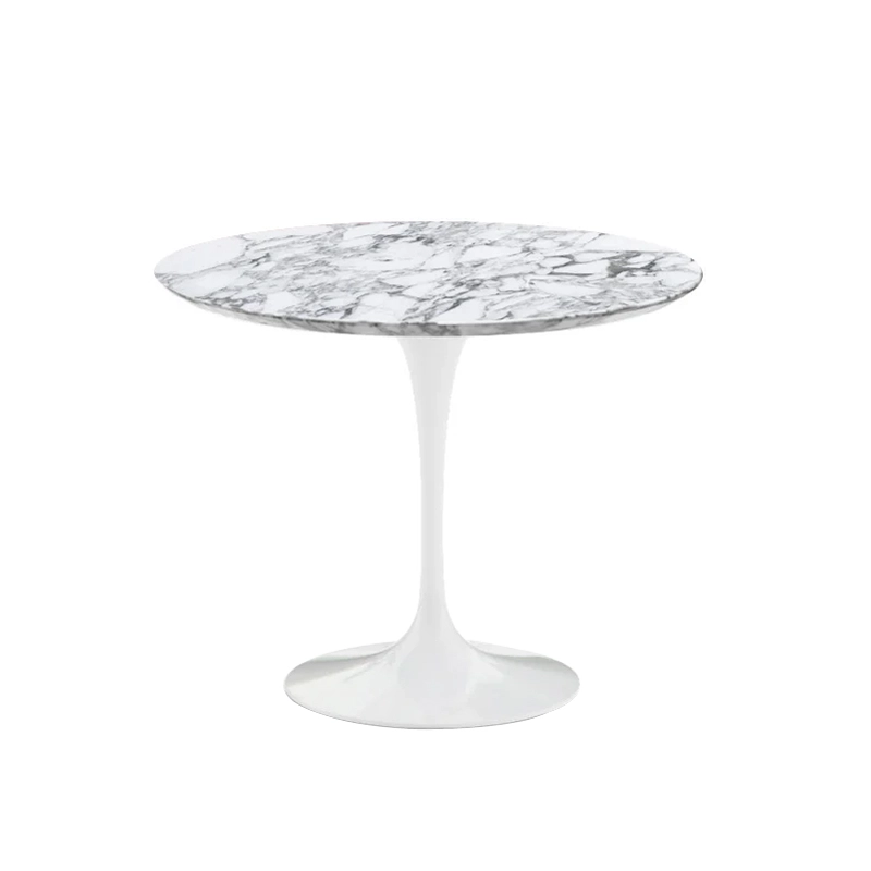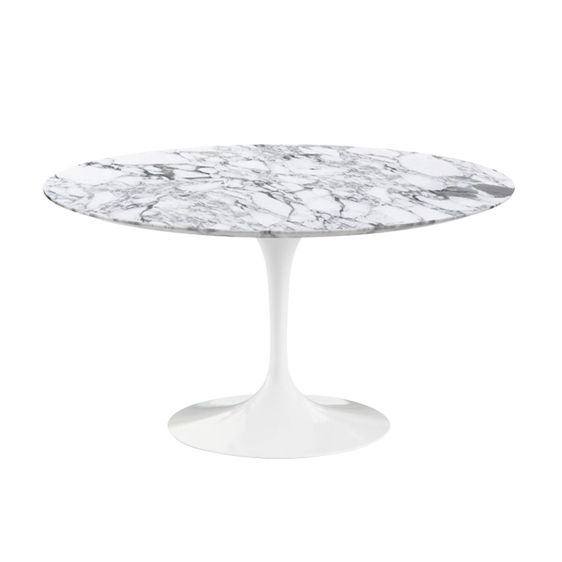 Designed in the 1950s, Eero Saarinen's tables are classed as cult pieces of furniture in the history of design. Timeless, imitated but never equalled, they combine understated style with elegance and lend themselves to all interiors. The Saarinen table top is characterised by a bevelled edge that accentuates its lightness, regardless of its size. This table comes with a white laminate top or a white Arabescato marble top. It is also available as a side table with a white laminate, Arabescato marble (white), or Marquina marble (black) finish.