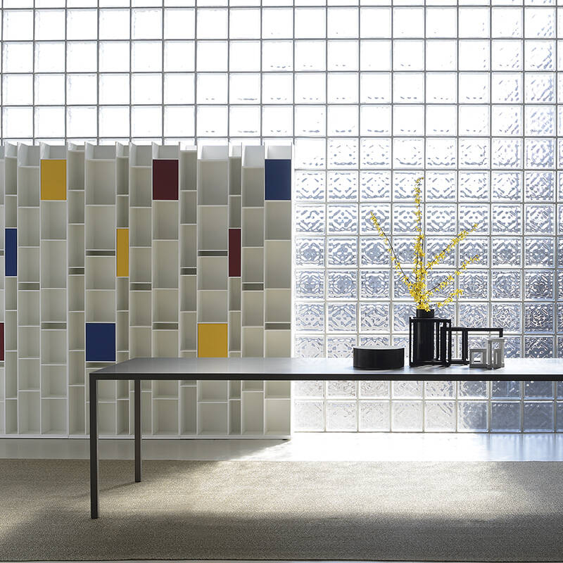 MDF Italia, this single-material table impresses not only for its ability to hold itself in tension, allowing it to be made in exceptional dimensions, but also for its technical regularity and great aesthetic lightness. The particularity of this table from