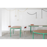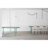 For the fifth anniversary of Valerie Objects, Muller Van Severen is surprising the world with a creation we thought would never leave their workshop: the Wooden Tables collection of wooden furniture. It's no secret that the two Dutch designers have always put wood to one side, giving pride of place to other, less familiar materials such as polyethylene, enamel and lacquer. The new Wooden Tables are a nod to the refectory tables of the 90s, still visible in schools. The frame and legs of each Wooden Table are made from rounded steel tubing, and the top from oak wood. Three different shapes are available: a simple round with two templates, a rectangular refectory and a straight version with rounded corners.